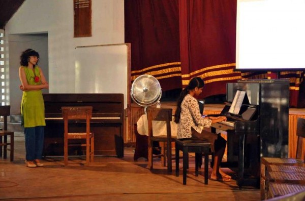 Tanya also realized that some students were somewhat intimidated by the presence of their teachers and tongue-tied. She set about allaying such inhibitions by approaching them individually and urging them to express themselves through music.It was emphasized that the workshop was not restricted to the piano or western classical music.