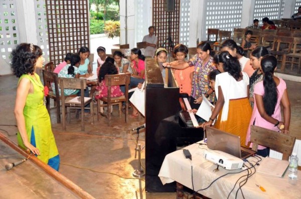 Chundikuli in the heart of Jaffna town experienced such a healing touch on Friday August 31st when a group of students and teachers gathered in the evening for magical moments of healing through music. The school hall of Jaffna’s Chundikuli Girls College was alive with the sound of music as one of Sri Lanka’s foremost musical exponents shared her time,energy, expertise and above all emotions with a group of students and teachers.