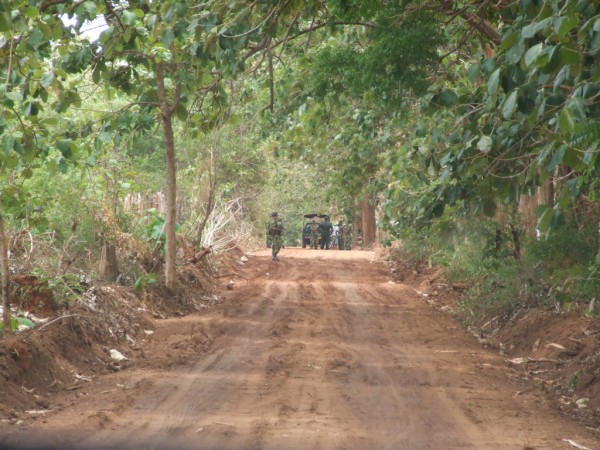 At the turn off to the Seeniyamottai IDP facility, there was heavy military presence. When asked whether we could at least drive past the camp, there were curt orders to ‘quickly turn back and go.’