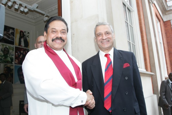 President Mahinda Rajapaksa of Sri Lanka with Commonwealth Secretary-General Kamalesh Sharma at Marlborough House, London, after the first consultation of the Commonwealth mini summit on ‘Reforming International Institutions’, 9 June 2008