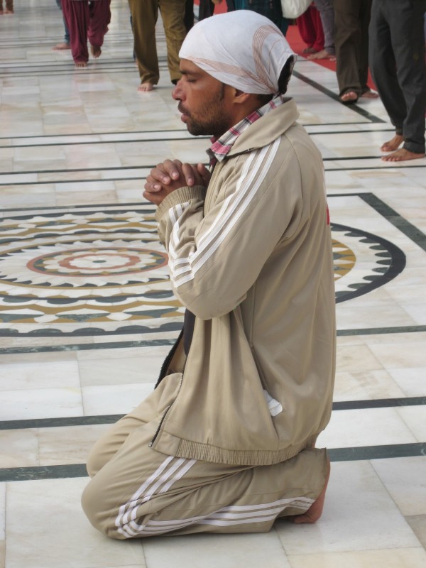 A devotee prays at the Golden Temple in Amritsar