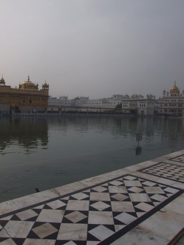 There are four entrances to the temple, symbolic of the openness of Sikhs towards people from all religions. Pilgrims have to walk on the white marble barefoot, after dipping, and wetting their feet in a pool of water at the entrances. Despite the heavy winter weather, pilgrims from all parts of India, and elsewhere throng the Golden temple to invoke blessings.