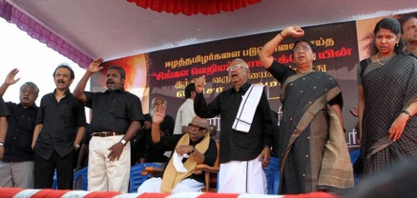 Alleging that Sri Lanka waged an “all-out war” against the Tamils, Mr. Vaiko accused the UPA government of backing the “genocide of innocent Tamils.” He warned the Congress-led coalition of a fitting reply from the people in the general election for its “assault” on Tamil sentiments. “We will not forgive the Manmohan Singh government for supporting Sri Lanka in its war against Tamils,” he said, addressing the protesters who burnt an effigy of Mr. Rajapaksa