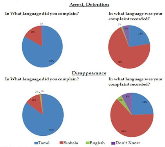 The situation in police stations and places that are to provide redress is further reflected in the graphs below, illustrating the difficulties experienced by victims of arrests, detention and disappearances to file a complaint in their own language:
