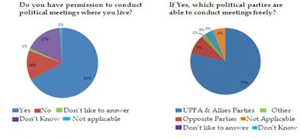 Based on TSA’s findings, it is clear that not all political parties are treated equally by the state security apparatus. Political parties which form part of the United People’s Freedom Alliance (UPFA) are able to meet freely throughout the North, East and Hill Country; whereas opposition parties like the Tamil National Alliance (TNA) and others have had their freedom of association curtailed.