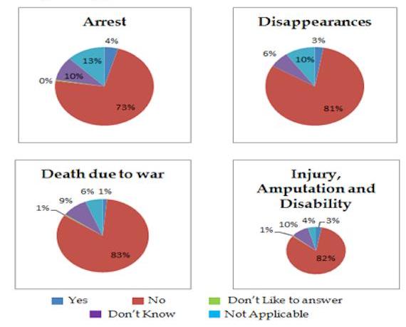 [3] This question refers to the baseline survey conducted by the GoSL to design compensation and relief packages for individuals subjected to arrest, disappearance, war-related death and injury, and their families. The graphs illustrate the response of surveyed individuals in each of those four situations.
