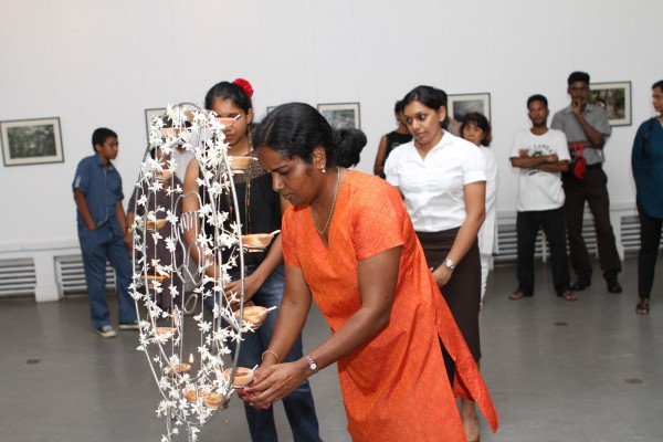 Dushiyanthini Kanagasabapathipillai, participant of Women’s Photography Exhibitions lighting the oil lamp