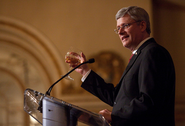 Prime Minister Stephen Harper Raising a glass in honour of French PM Jean-Marc Ayrault-Mar 13, 2013-pic via: pm.gc.ca