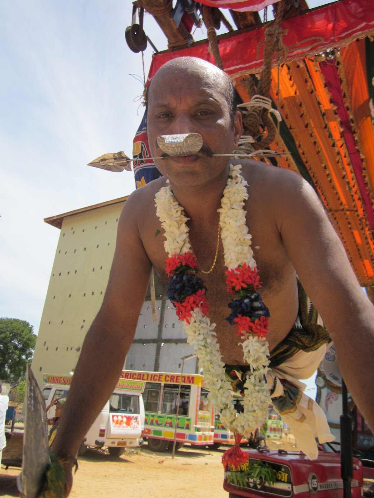 “I am a devotee of Lord Murugan, and have come to fulfill my vows after two decades” emotionally shares Thampu Manivannan while hanging on metal hooks, who currently resides in Germany, and is originally from Ilavaalai. His mother cried, and pleaded to Maavai Kanthan to invoke blessings.