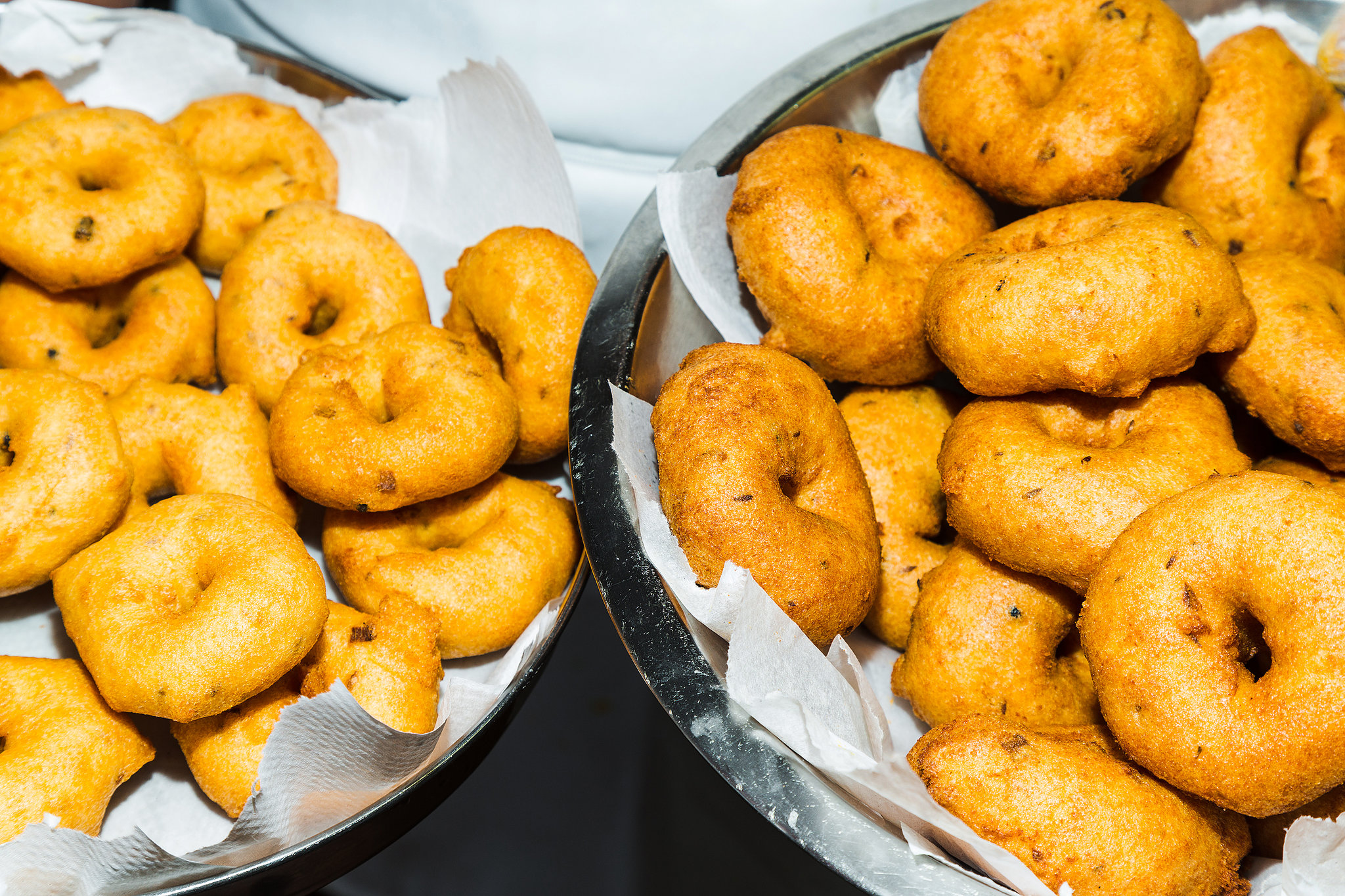Vadas, deep fried crispy lentil doughnuts, at Saravana Bhavan on Lexington Avenue in New York. Credit Andrew Hetherington for The New York Times