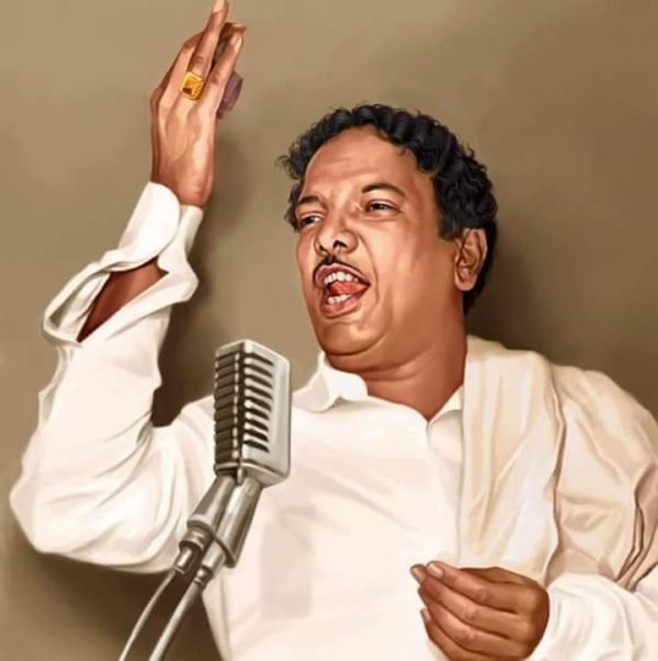 “Kalaignar” Karunanidhi developed a writing style for cinema that was flowery and alliterative(adukku Mozhi), and soon became very popular. Courtroom scenes, inquiries in royal courts in historical movies and short dramas introduced into films that had a modern setting, provided ample scope for Karunanidhi’s captivating prose. His reputation had producers advertising their movies by proclaiming, “Story and Dialogue by ” Kalaignar Mu. Karunanidhi”. When film titles were projected in the cinema halls, his name would be shown ahead of the stars and greeted with applause. There were others to follow Karunanidhi in both content and style from the DMK camp — Aasaithamby, Krishnaswamy, Maaran and Kannadasan etc. But Karunanidhi was the master in that genre surpassing even his mentor and leader Annadurai.