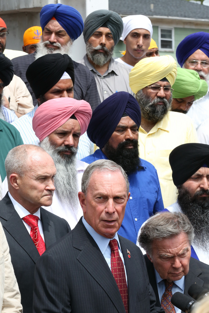 Mayor Bloomberg visits Sikh Cultural Society in Queens, NY with Police Commissioner Kelly.